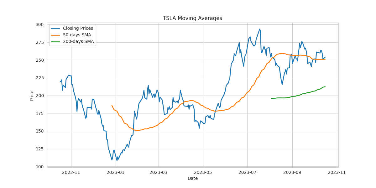 Plot the short-term and long-term moving averages along with the closing prices to identify trends.
