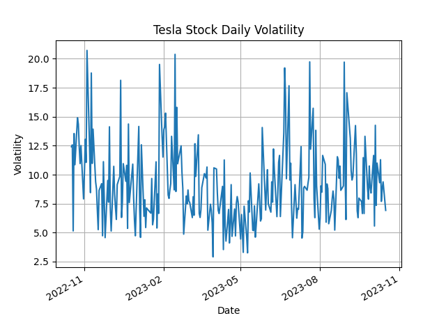 Next, we can check the groupchat folder, which we set as our work_dir for the results. As you can see, it's been quite a volatile year for Tesla...