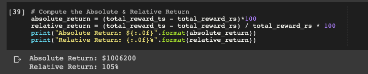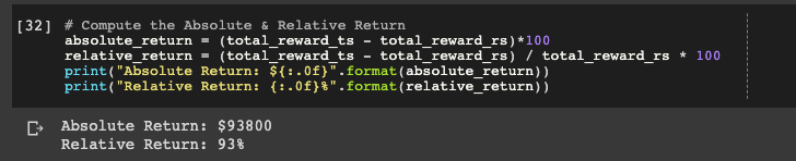 absolute_return = (total_reward_ts - total_reward_rs)*100