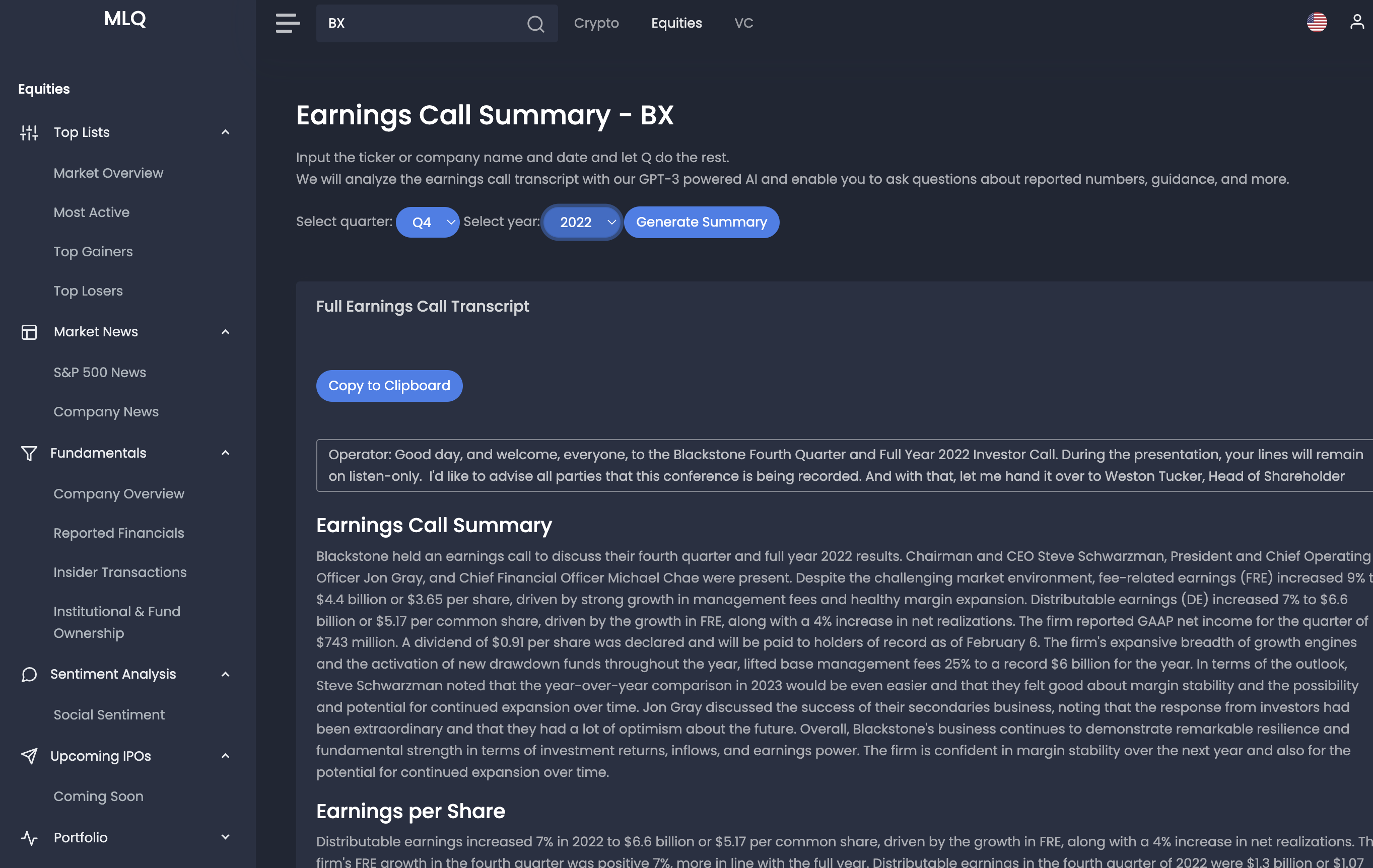Blackstone held an earnings call to discuss their fourth quarter and full year 2022 results on Jan 26, 2023.