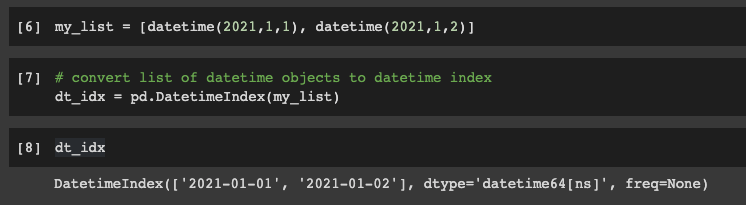 my_list = [datetime(2021,1,1), datetime(2021,1,2)]