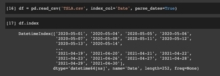 To simplify this, we could have also just set the index_col='Date' and set parse_dates=True.