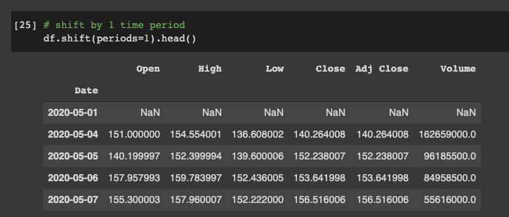 We can also shift the time period backwards by using -1 for our periodsargument.