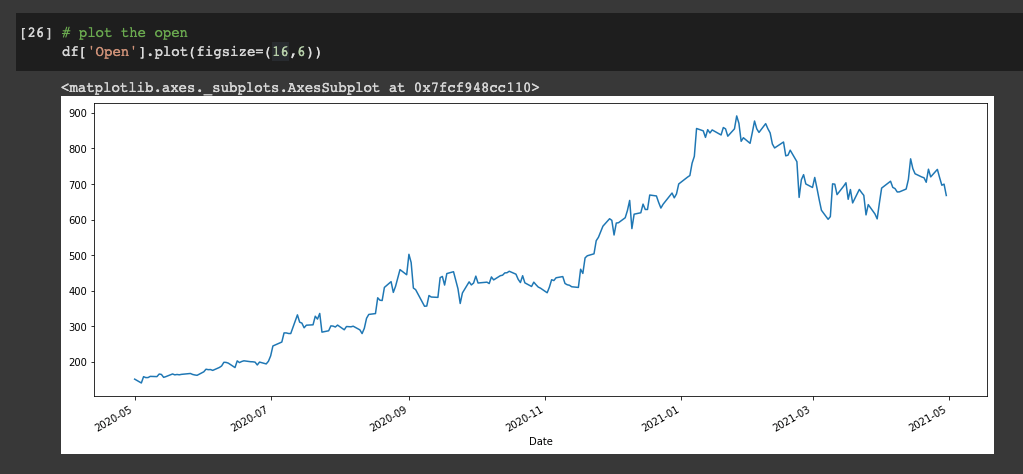 To understand this, let's take a look at stock market data for Tesla from May 1st, 2020 - May 1st, 2021, which can be downloaded from Yahoo Finance.