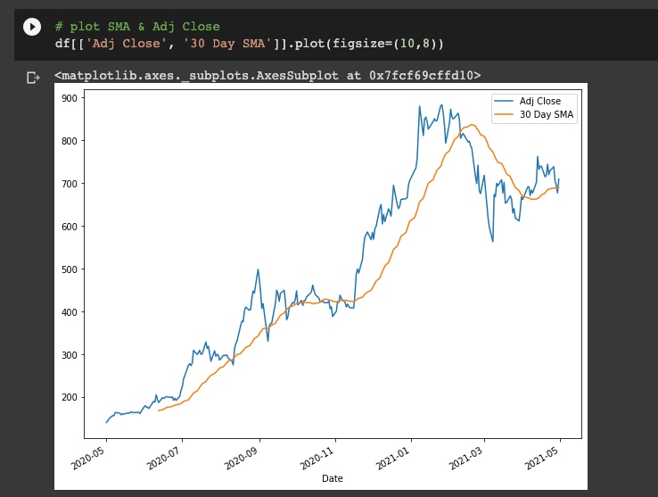 To recap, here's how we can calculate the 30-day SMA for TSLA: