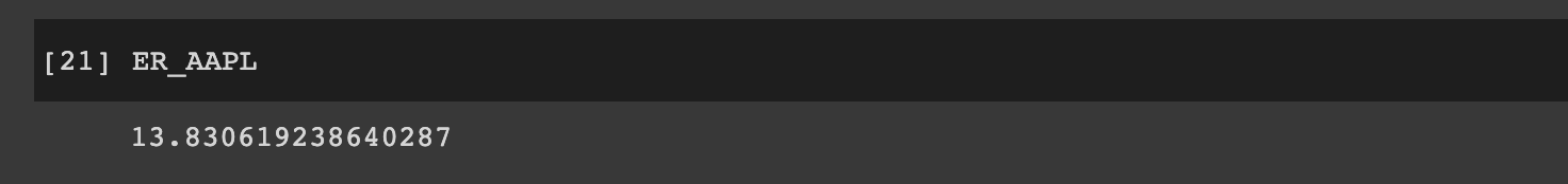 ER[i] = rf + (beta[i] * (rm-rf)) Finally, we can print out the expected return based on CAPM of each stock: