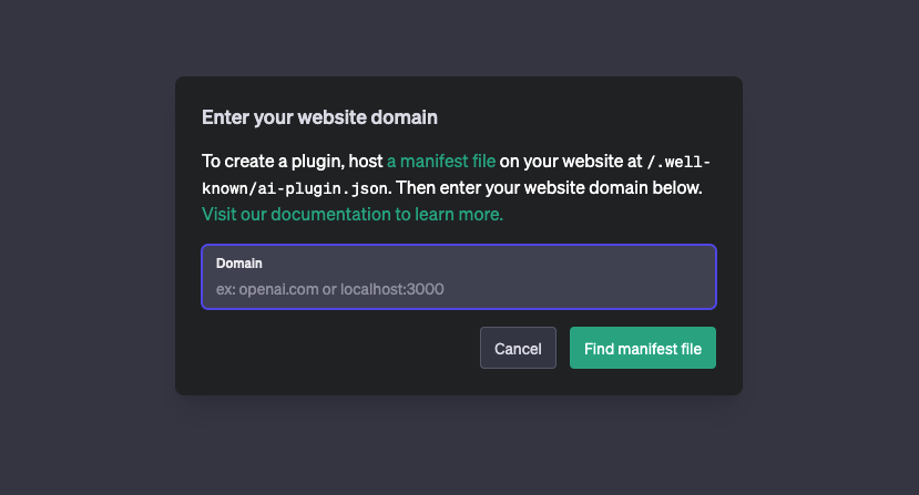 Next, let's create a file called ai-plugin.json in the .well-known folder for our plugin manifest, which as OpenAI describes: