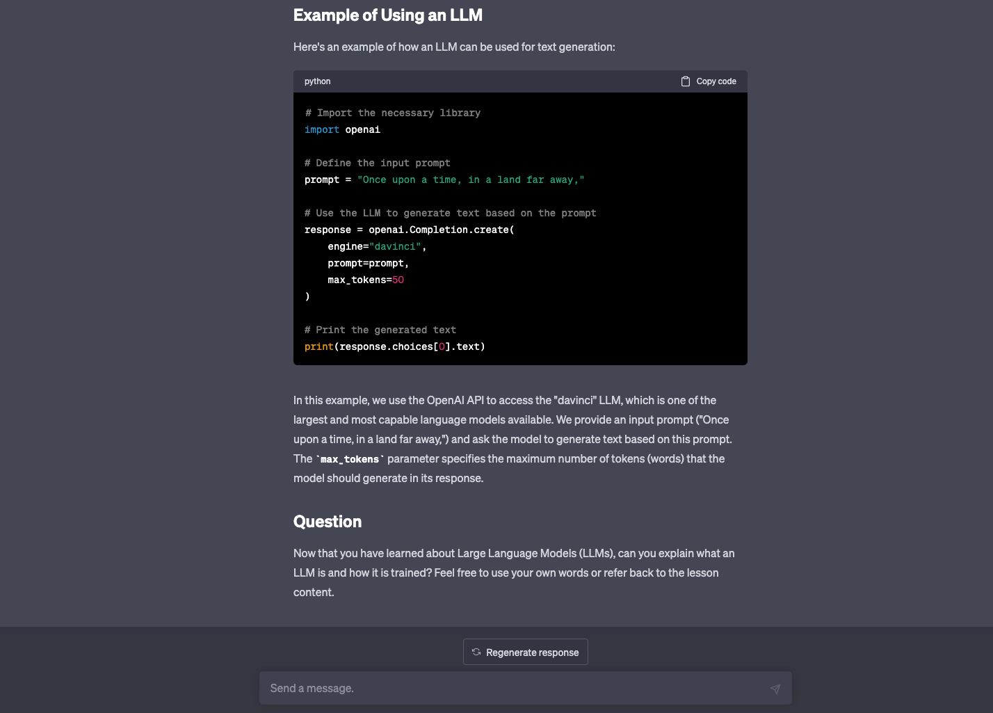 In this guide, we're going to building a new ChatGPT that doesn't rely on third party APIs, and instead allows users to select an educational track. Each track will guide user's through a set of pre-defined prompts, ask questions, and provide feedback for an interactive learning experience.