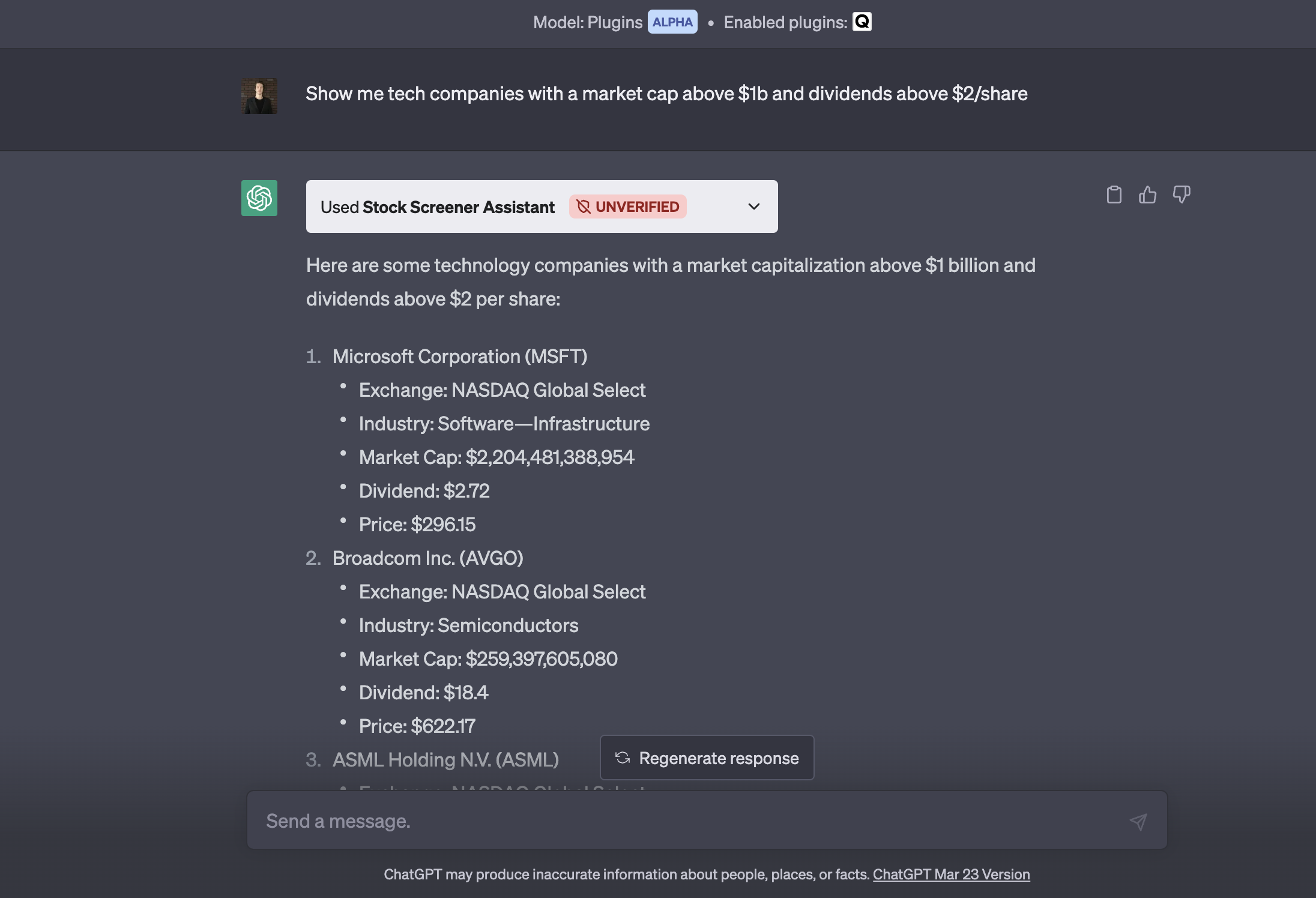 Summary: ChatGPT Stock Screener Plugin