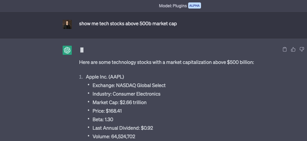 In this guide, we'll build a new ChatGPT Plugin that acts as a stock screener assistant, meaning it retrieves and filters stocks based on the user's query.