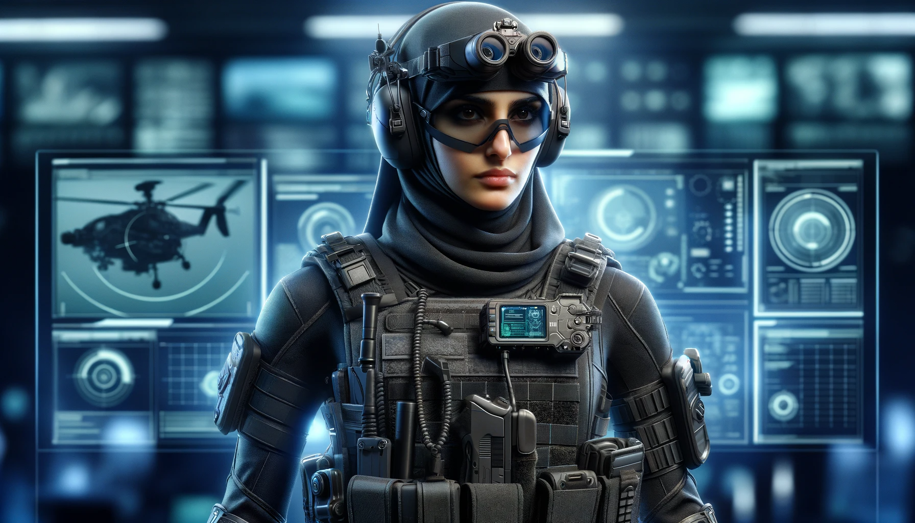 Design a stealthy operative character for a modern action game, equipped with high-tech gadgets and a sleek, tactical outfit.