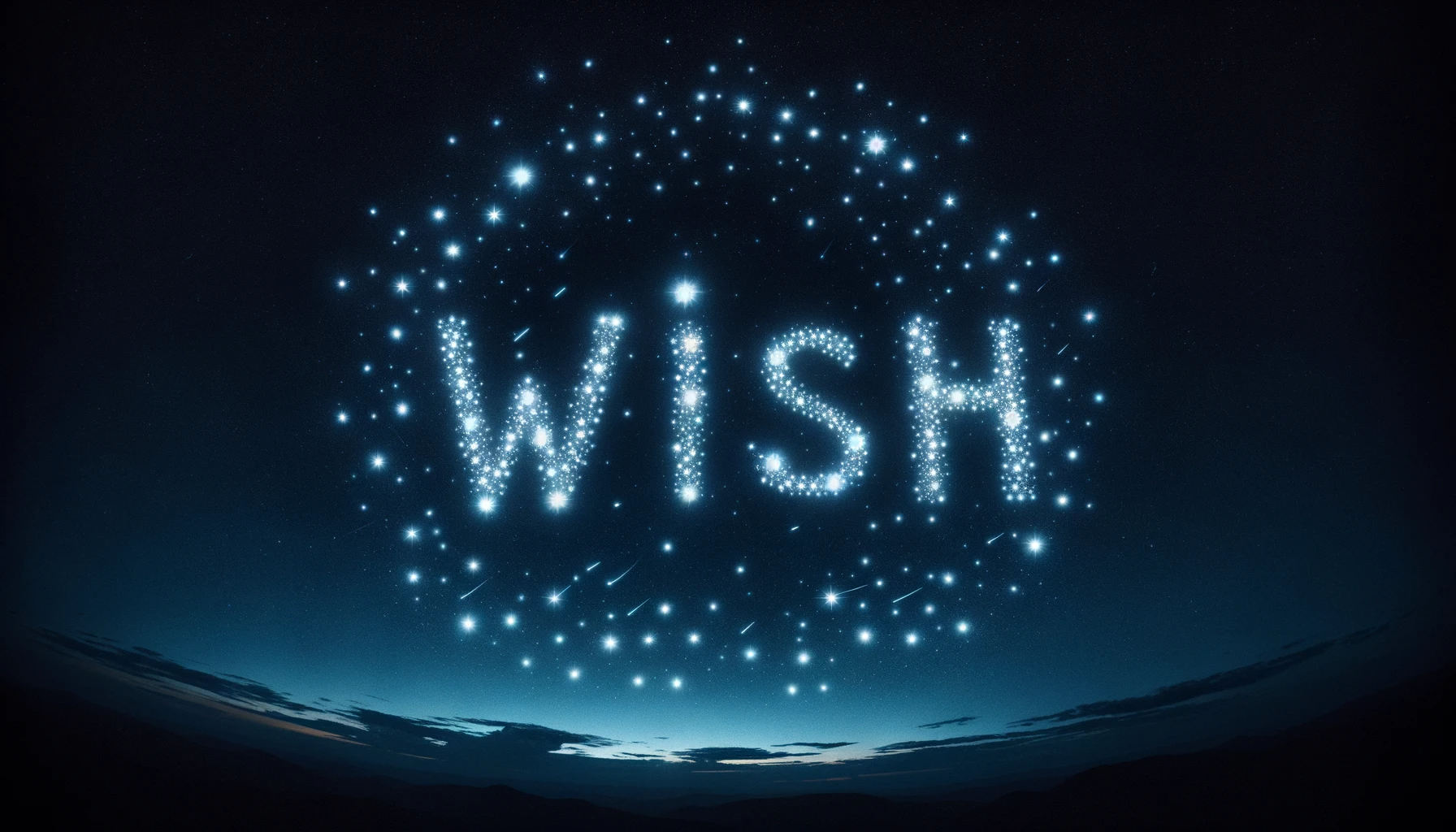 Depict a clear night sky filled with stars, with "Wish" subtly formed by the arrangement of the stars.
