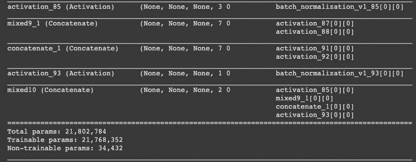 base_model.summary()As we can see this is a huge model with around 22 million total parameters: