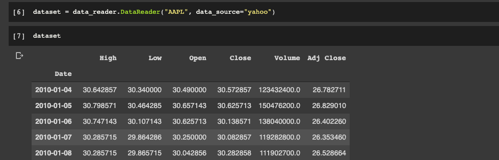 dataset = data_reader.DataReader(stock_name, data_source="yahoo")