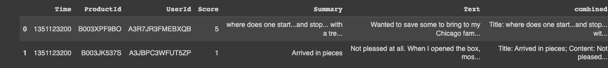 df['combined'] = "Title: " + df.Summary.str.strip() + "; Content: " + df.Text.str.strip()