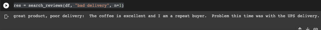 One of the ways we can use our embeddings is semantic search, which enables us to search through all reviews very efficiently and cost-effectively.