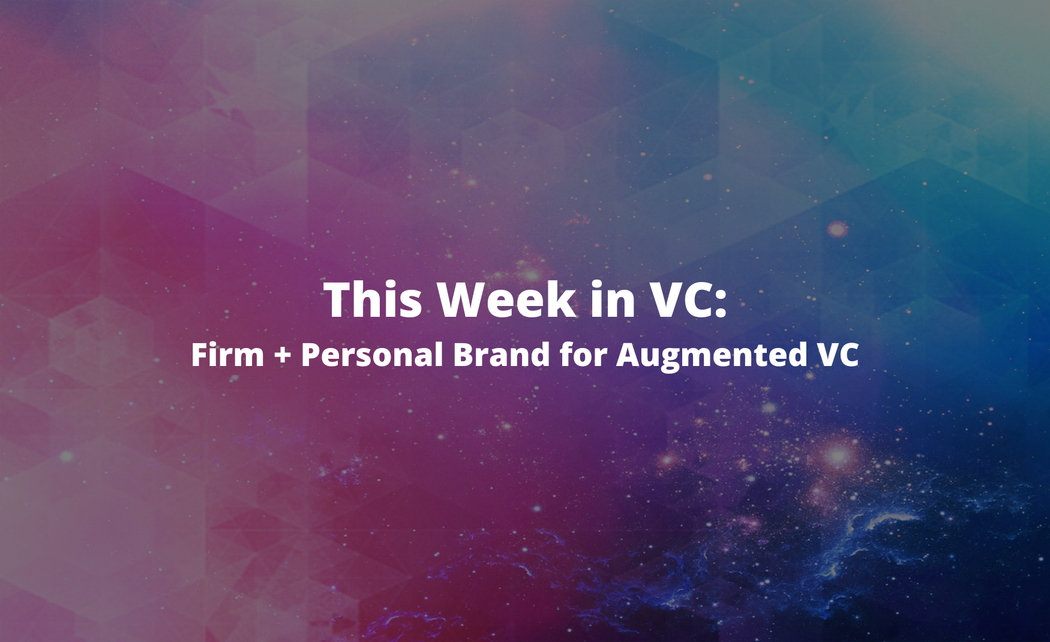 Welcome to our This Week in VC roundup - this week we have stories about how a strong firm and personal brand for augmented, data-driven venture capital.