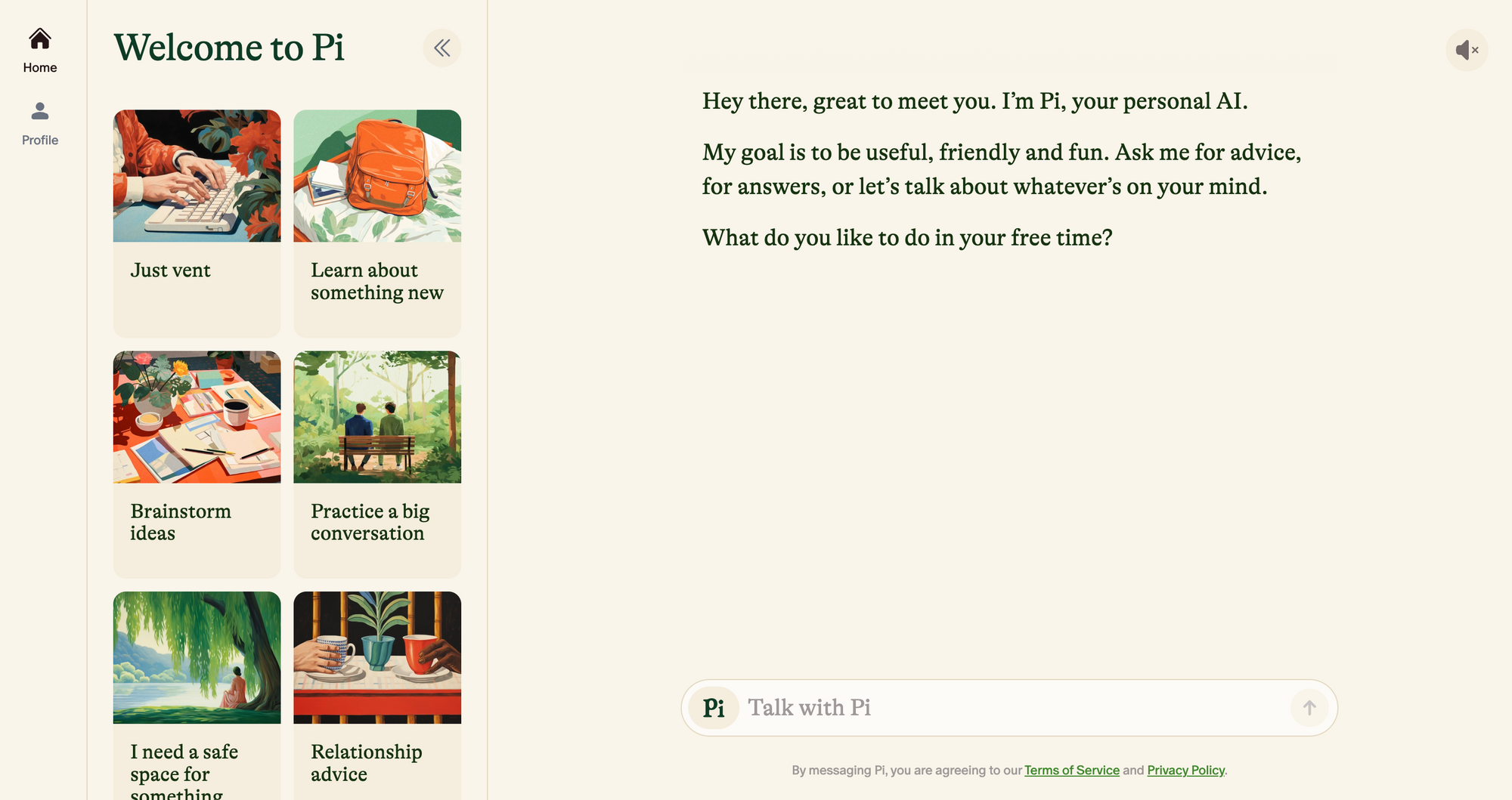 Inflection AI is a company founded by Mustafa Suleyman, co-founder of DeepMind, and LinkedIn co-founder Reed Hoffman. Inflection’s LLM, which powers its conversational agent Pi, aims to create “personal AI for everyone”.