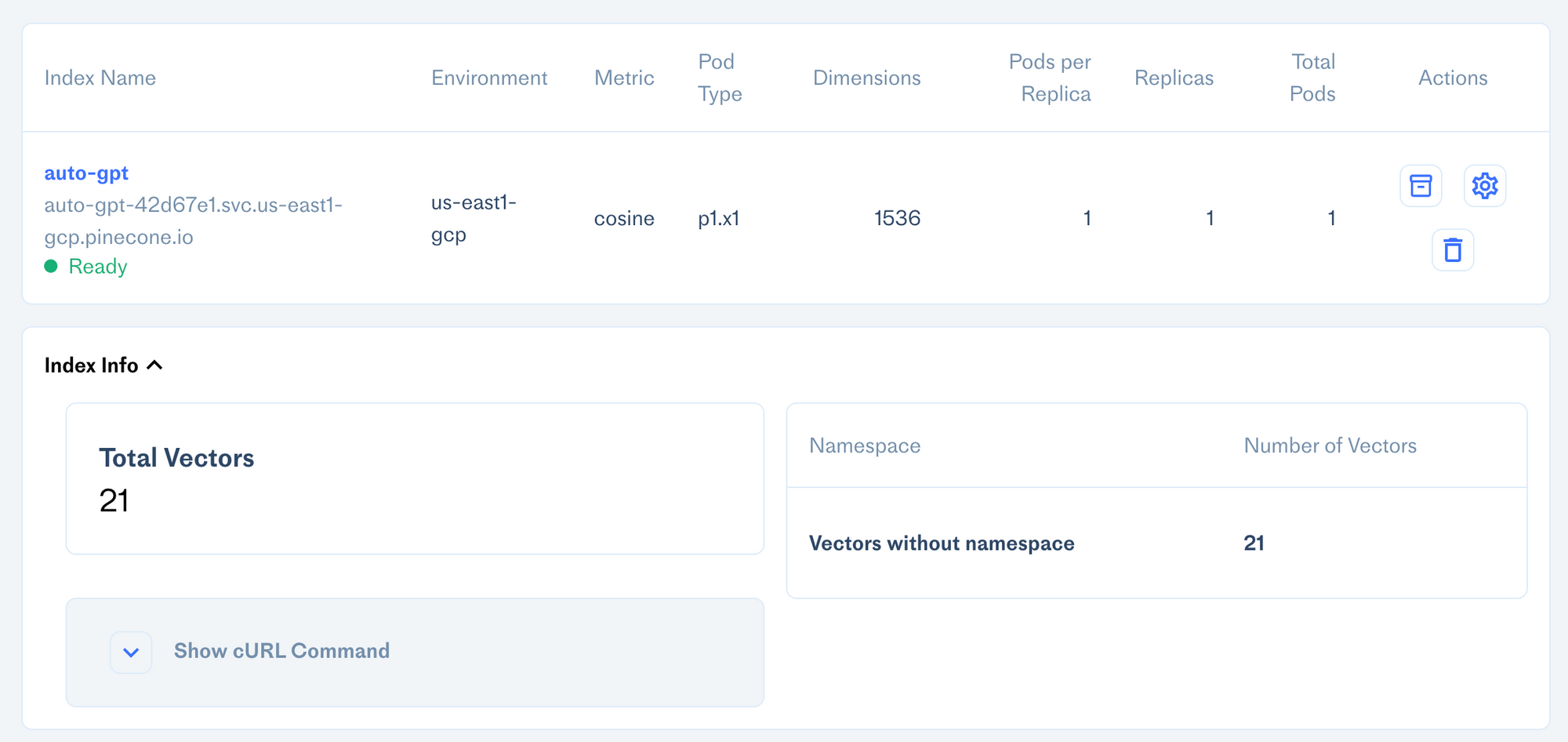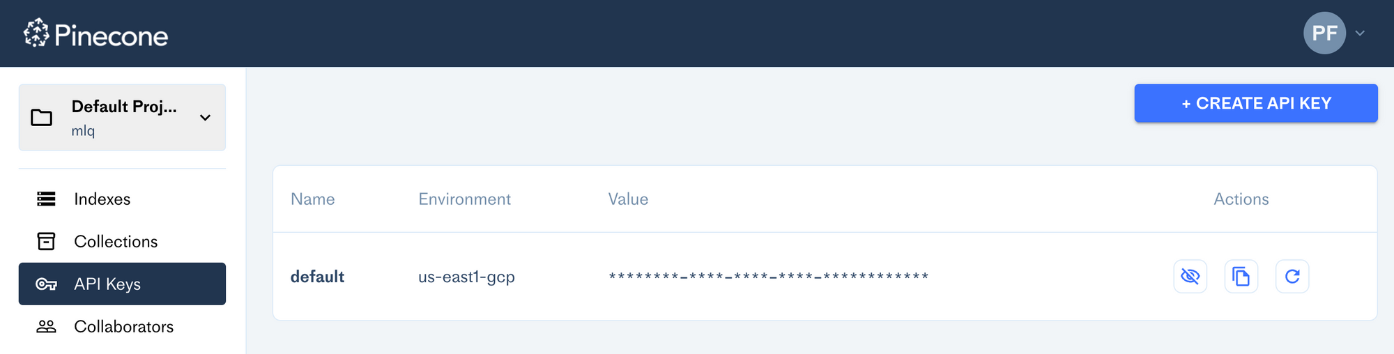 PINECONE_ENVkey (i.e.us-east1-gcp) - Set the