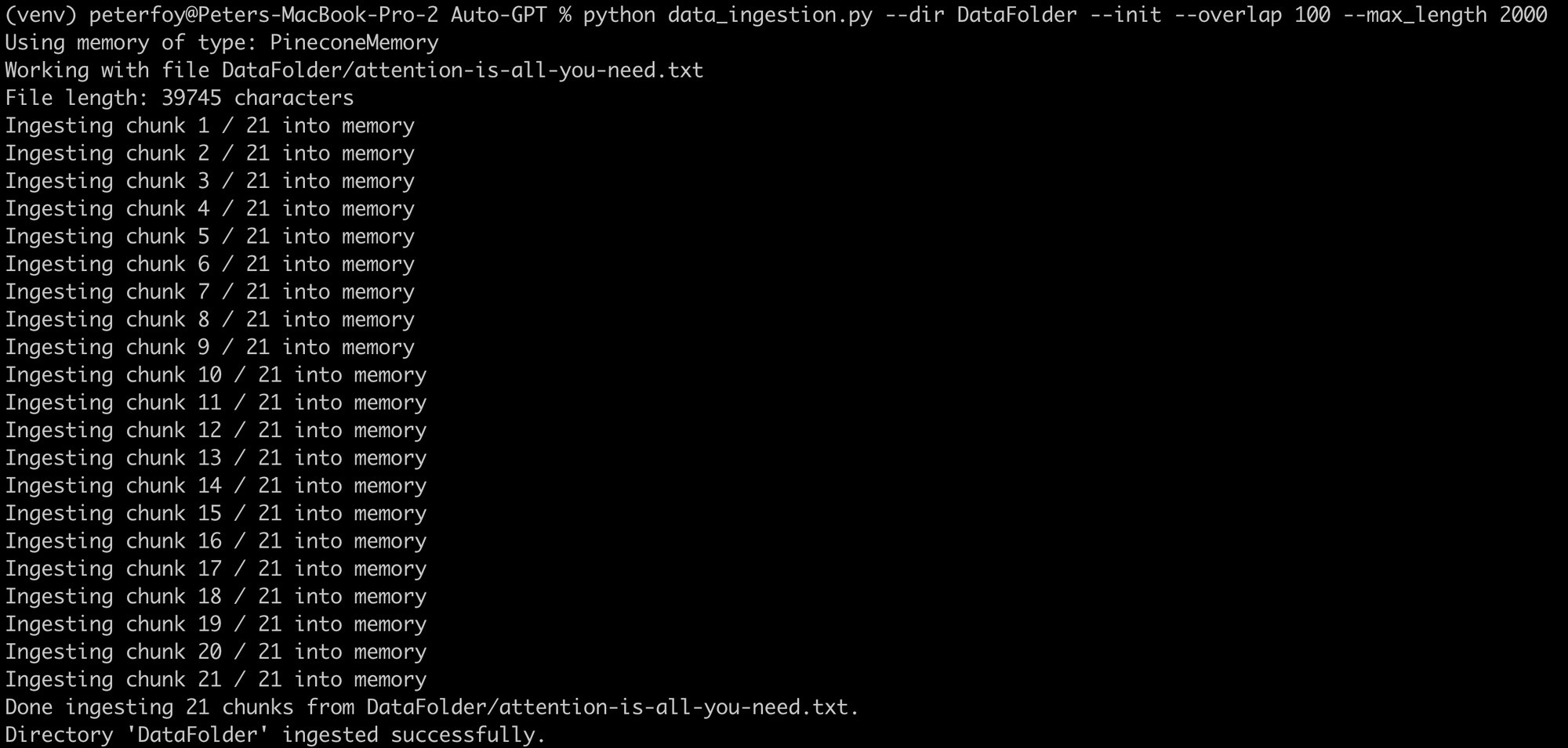 python data_ingestion.py --dir DataFolder --init --overlap 100 --max_length 2000