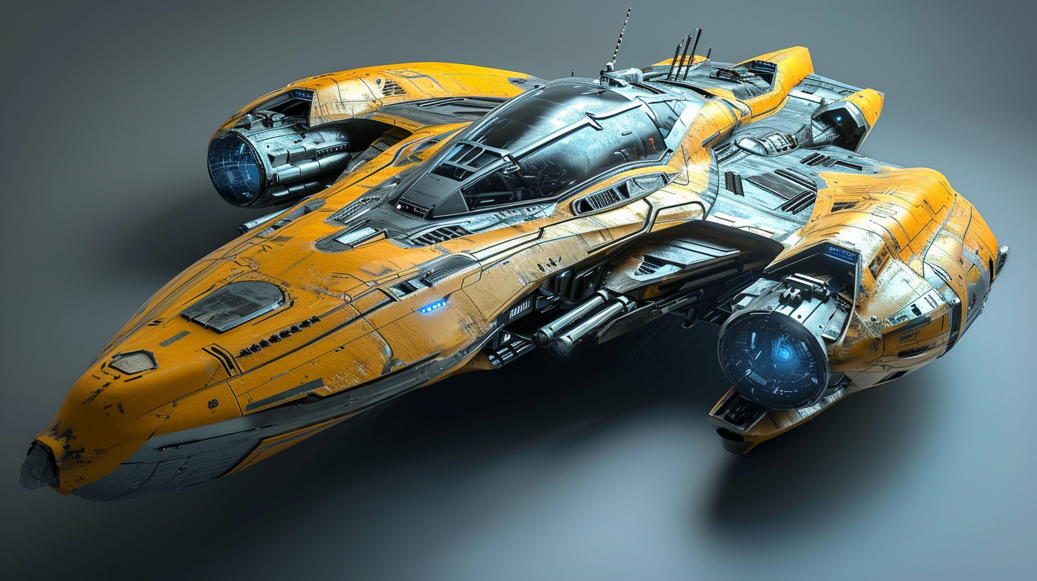 Design a sleek, futuristic spacecraft for a space exploration game, showcasing advanced technology, detailed cockpit, and a dynamic, modular exterior design --ar 16:9 --v 6.0