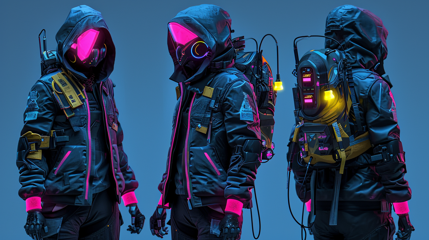 Develop a character concept for a cyberpunk-themed game, featuring a rogue hacker with neon-detailed cybernetic enhancements and urban, dystopian fashion --ar 16:9 --v 6.0