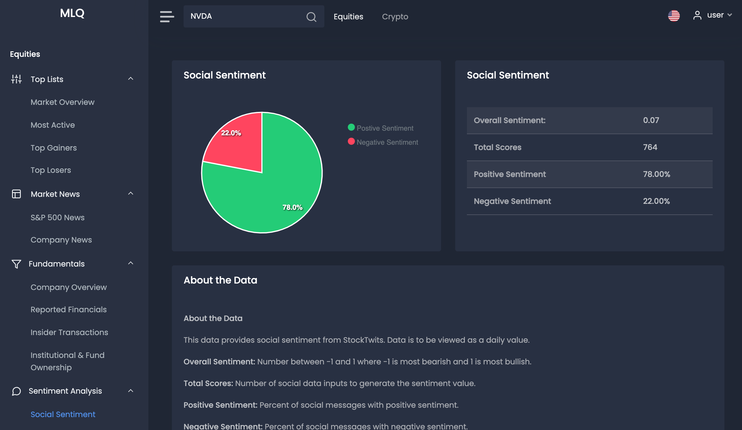 In terms of social sentiment, the company currently has a 78% positive and 22% negative sentiment based on data from StockTwits: