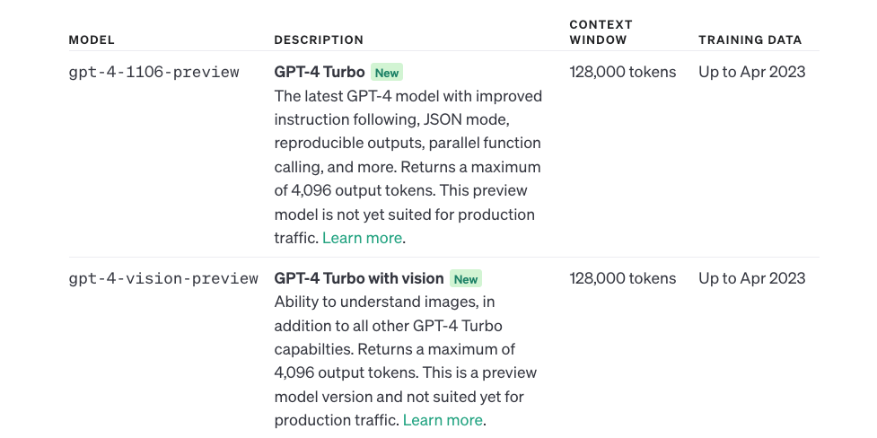 - 👀 Vision: GPT-4 Turbo now accepts images as inputs, useful for generating captions, analyzing images in detail, etc.