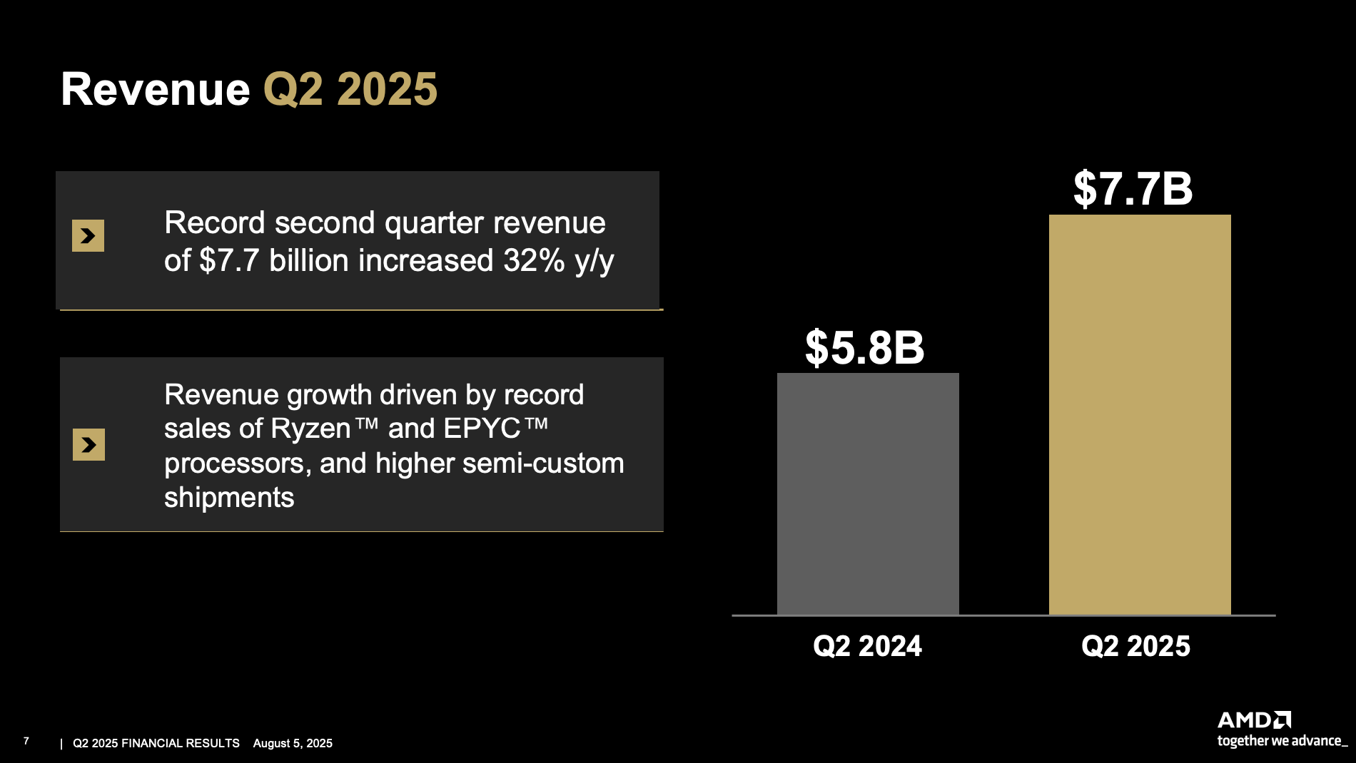 AMD Reports Record Q2 2025 Revenue, Impacted by China Export Controls; Issues Strong Q3 Guidance