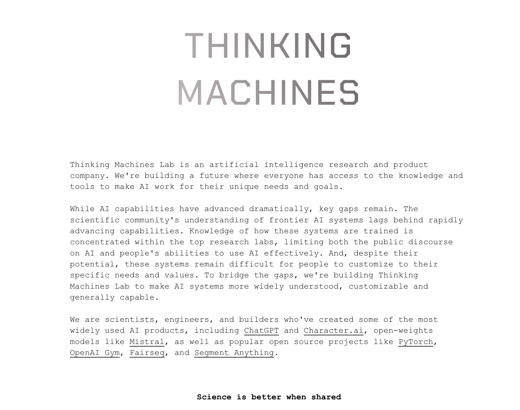 - Former OpenAI CTO Mira Murati's Thinking Machines Lab Raises $2 Billion at $10 Billion Valuation
