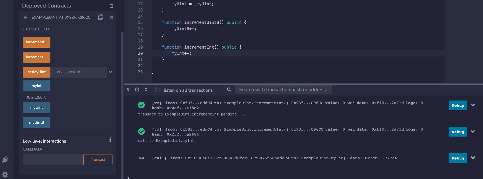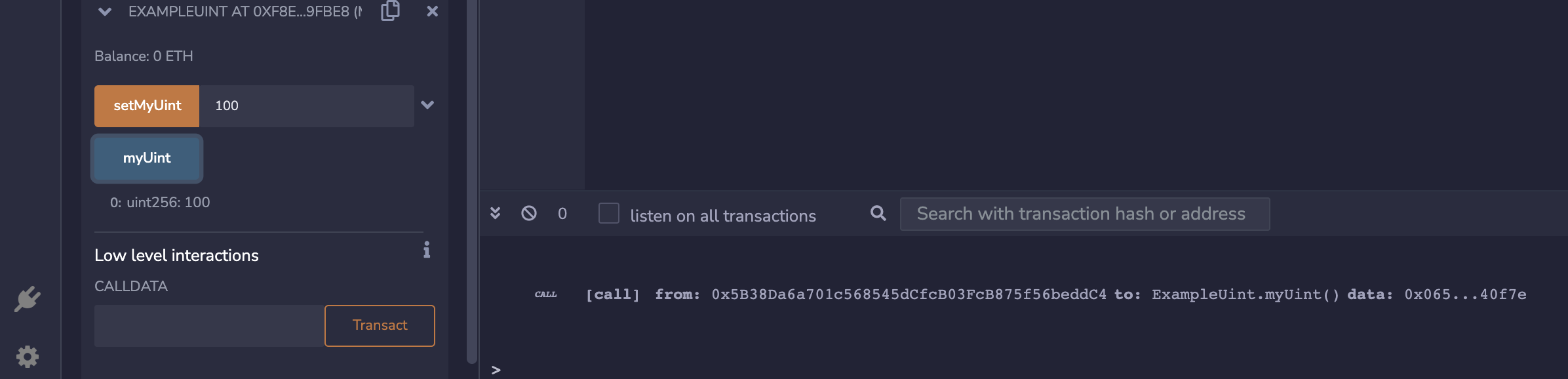 Let's now write a setter function called setMyUint() as follows so that we can update the integer value:
