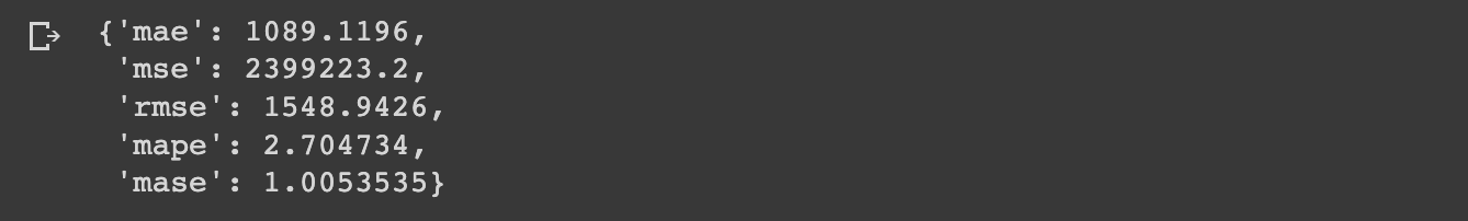 In addition to the evaluation metrics that come built into TensorFlow, we also saw how we can implement another evaluation metric: mean absolute squared error (MASE).