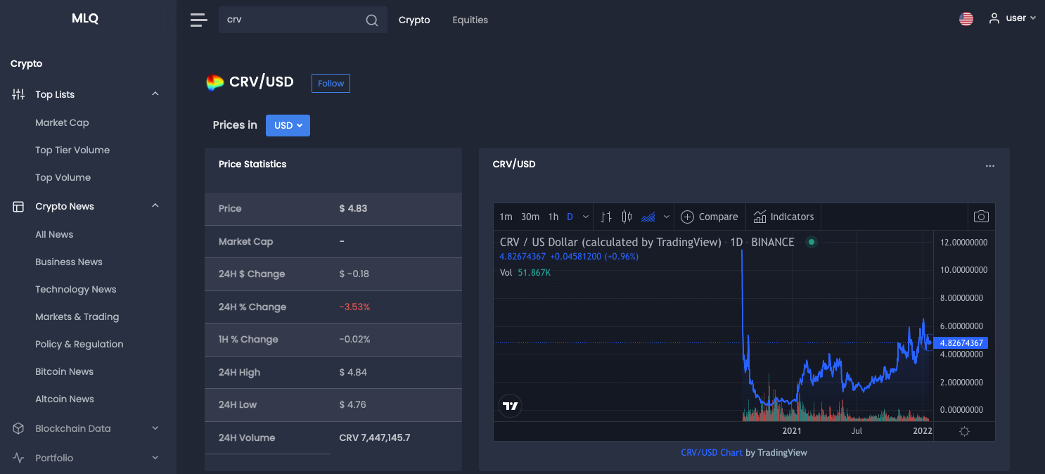 CRV token is trading below its 52-week high of $6.74 and has generally traded in range for most of its existence.