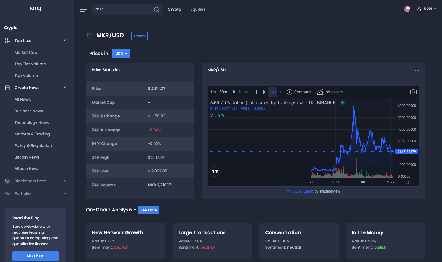 The first thing you will likely notice when you look at the Maker blockchain is the price of its governance token, MKR. Priced at a robust level of over $2,100, this is more of a functionality of the principles of supply and demand.