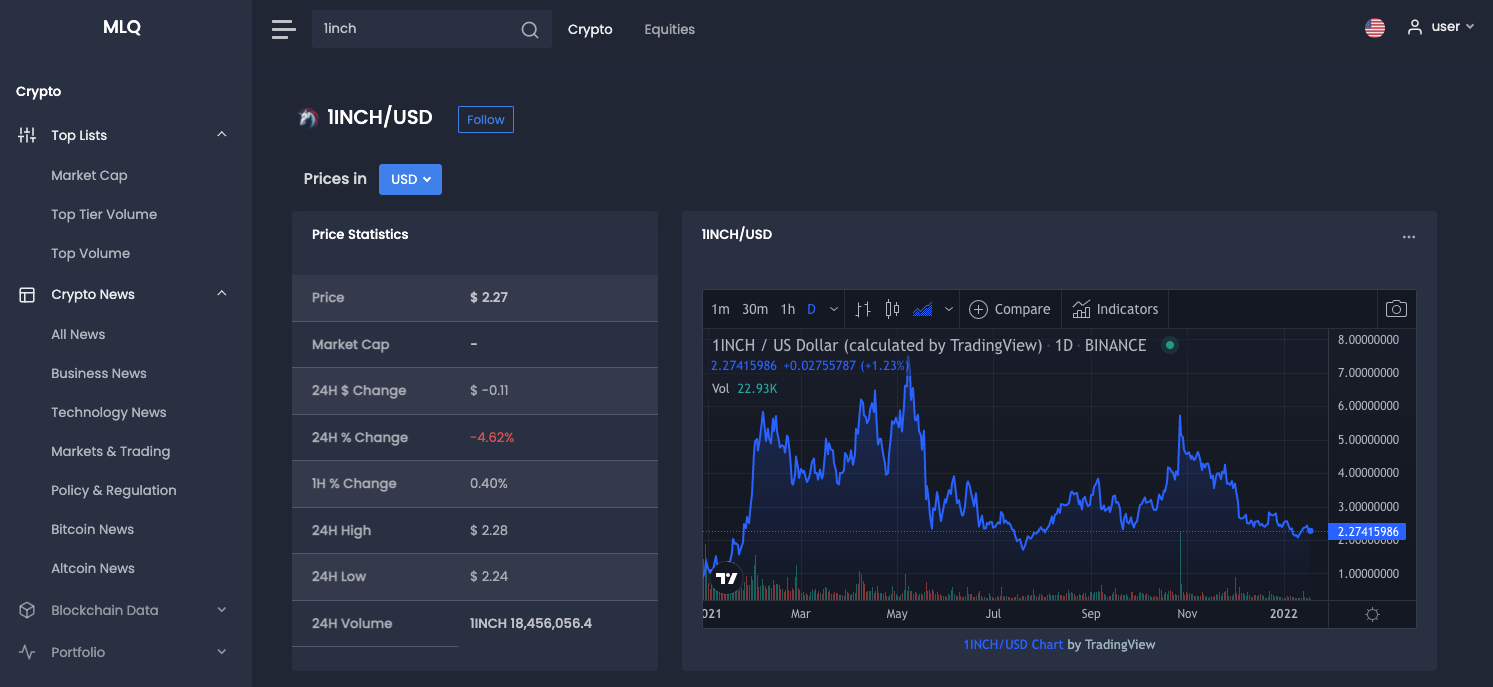 1inch traded as high as 7.87 per token over the past year, but is currently at just over $2.00 per 1INCH token.