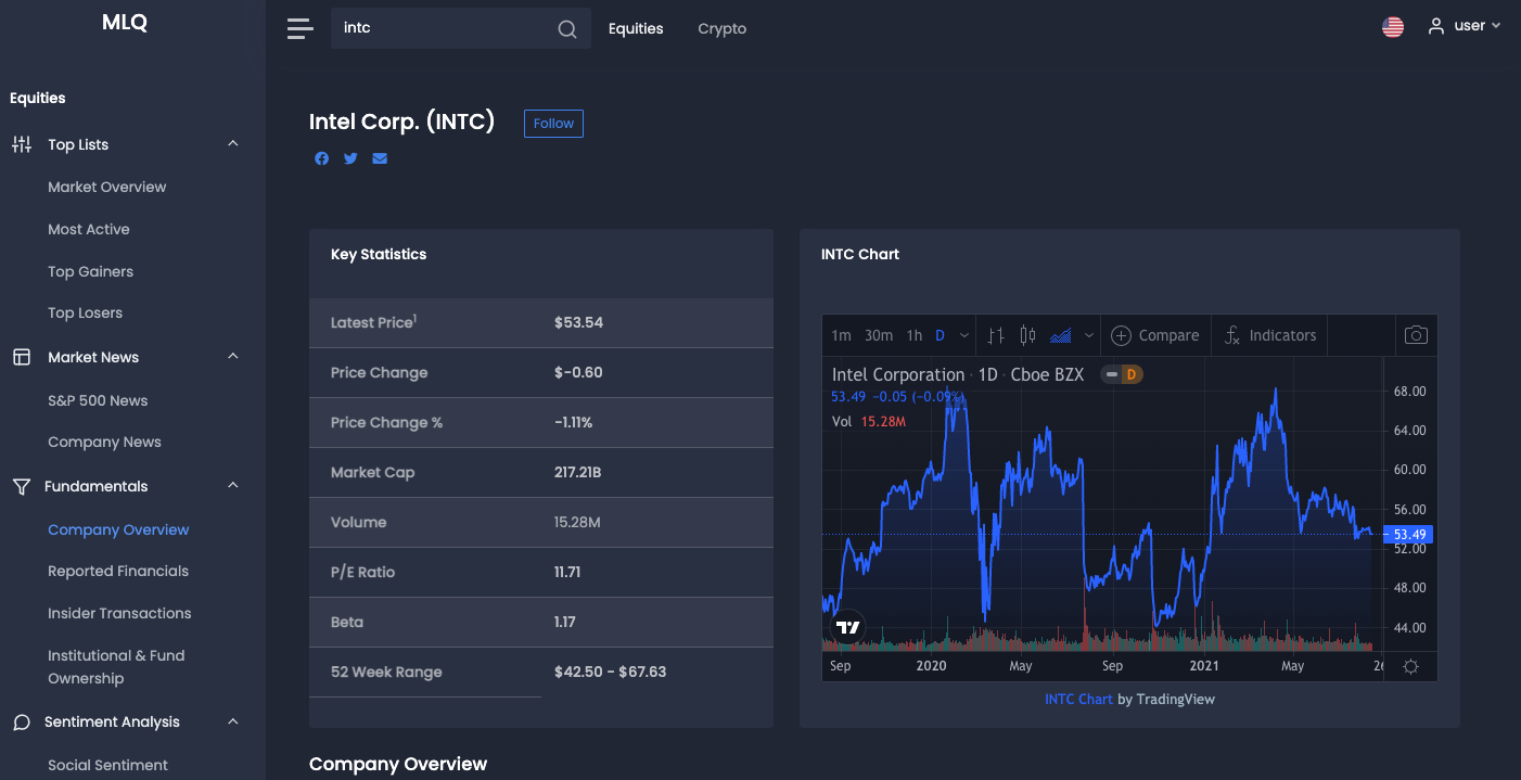 - Intel, Corp. (INTC)