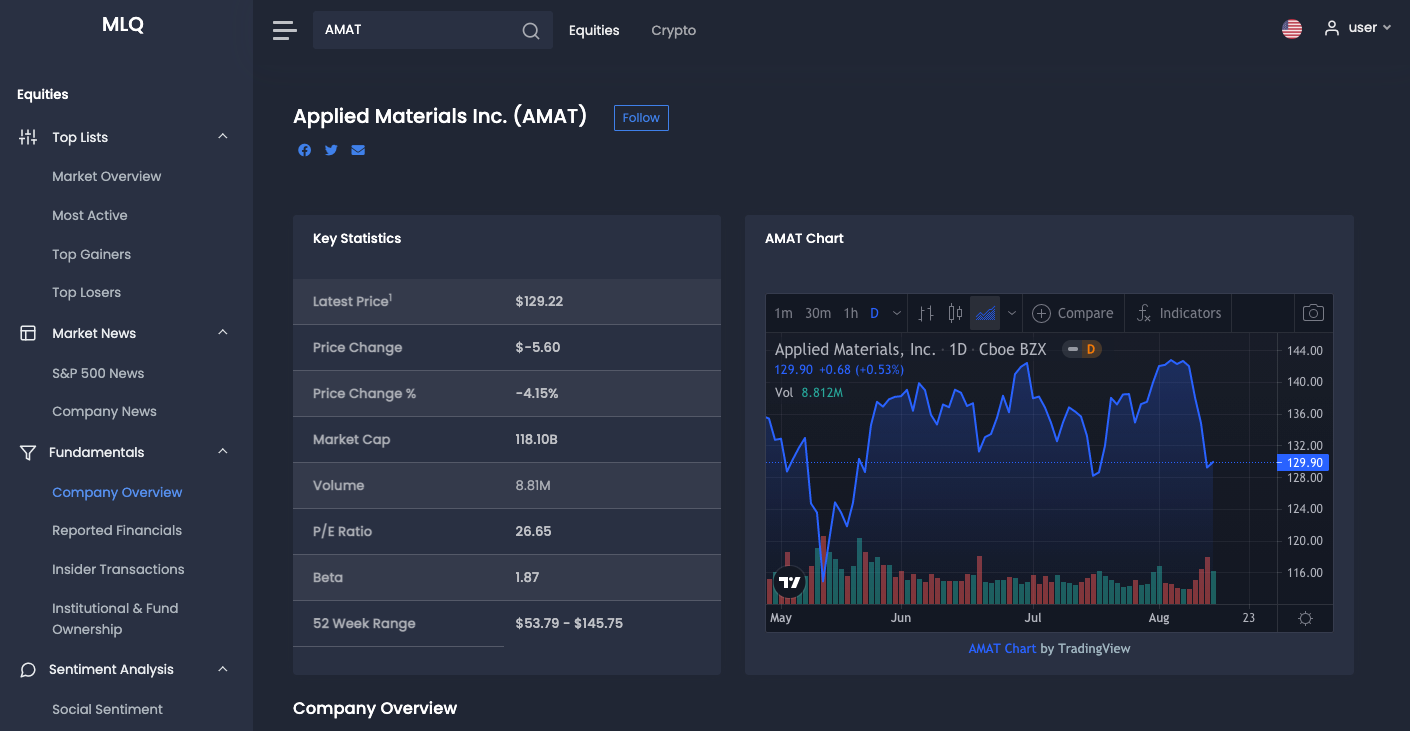 Applied Materials (AMAT) is another interesting company that is known for its manufacturing, materials engineering, and software solutions related to semiconductors. Their products are used to create chips and advanced products including electronics, display, and other related technologies.